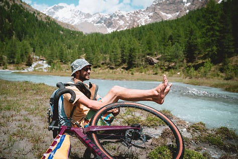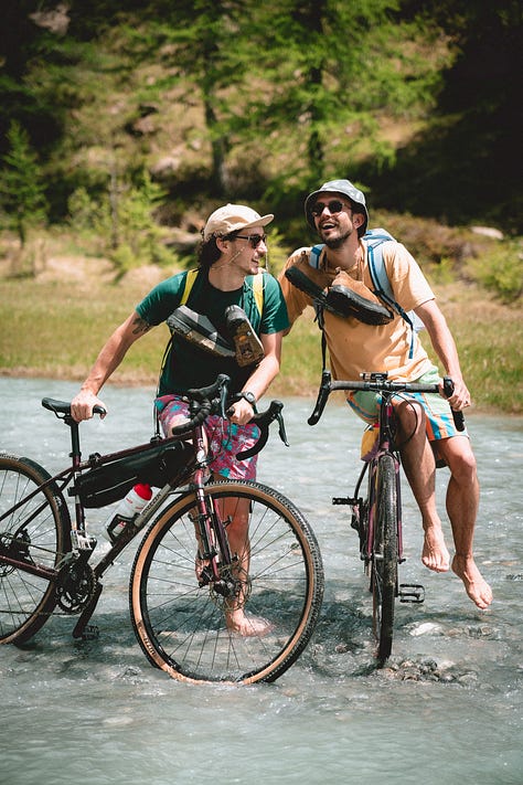 Essere leggeri mi ha riportato alle radici, senza briglie, libero come il fiume che attraversavamo in lungo in largo tra salti e risate. Anche i miei compagni di viaggio, per quanto ho potuto vedere dalle loro espressioni, si erano alleggeriti di peso in quella mattina a pedalare nel fiume.