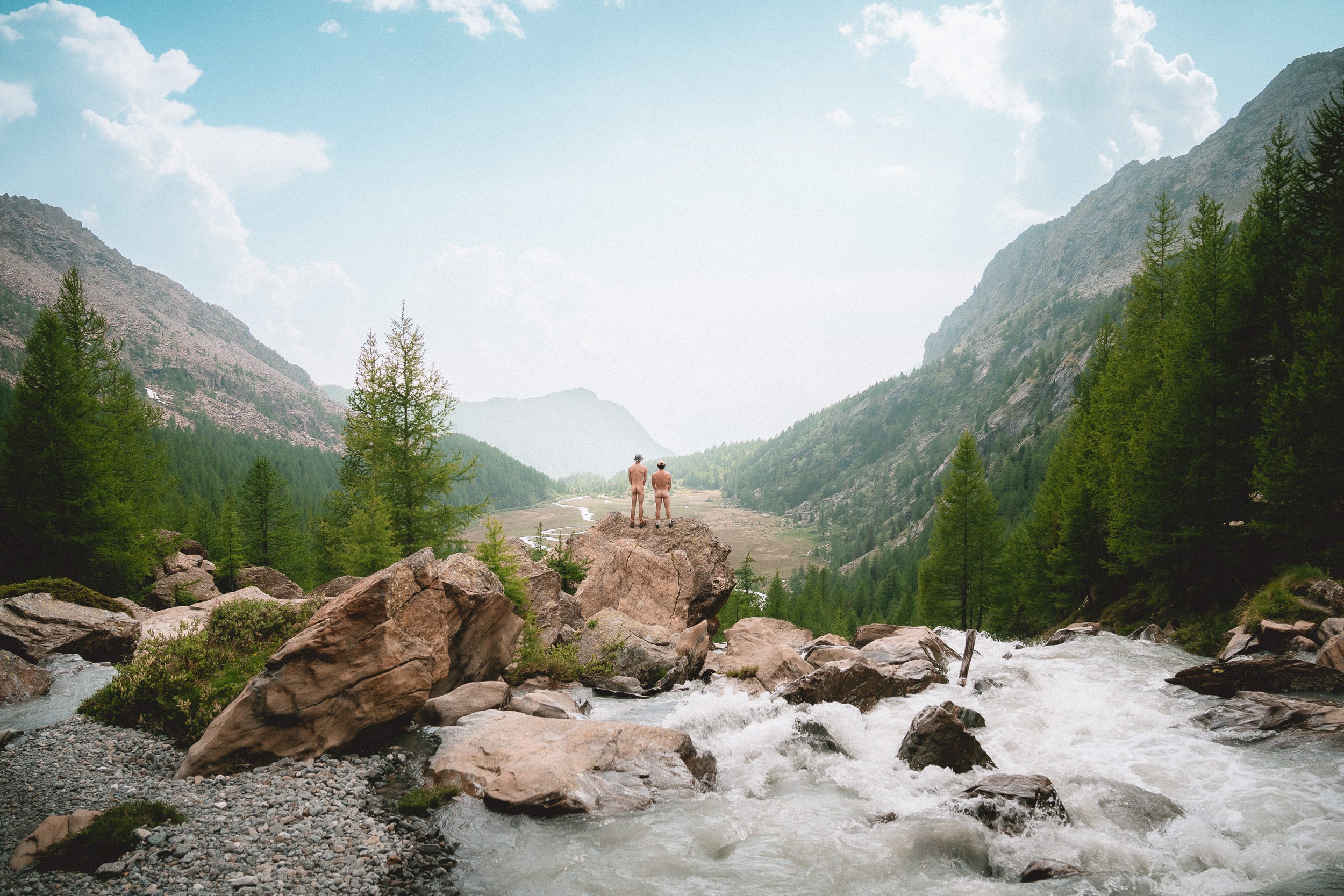 In qualche modo, era così anche per i miei due amici e compagni di viaggio. Davanti al panorama che si apriva, sulla roccia più esposta, con il fragore dell’acqua sotto di noi, si sono spogliati. Nudi.
